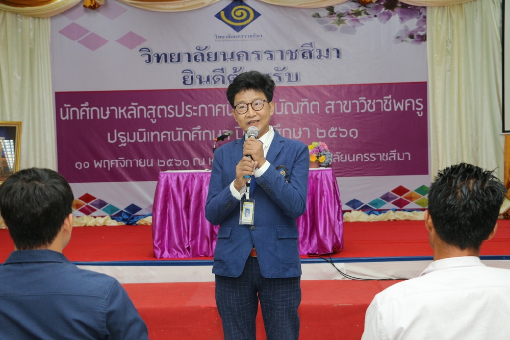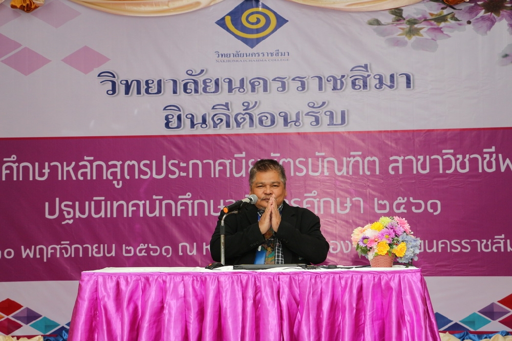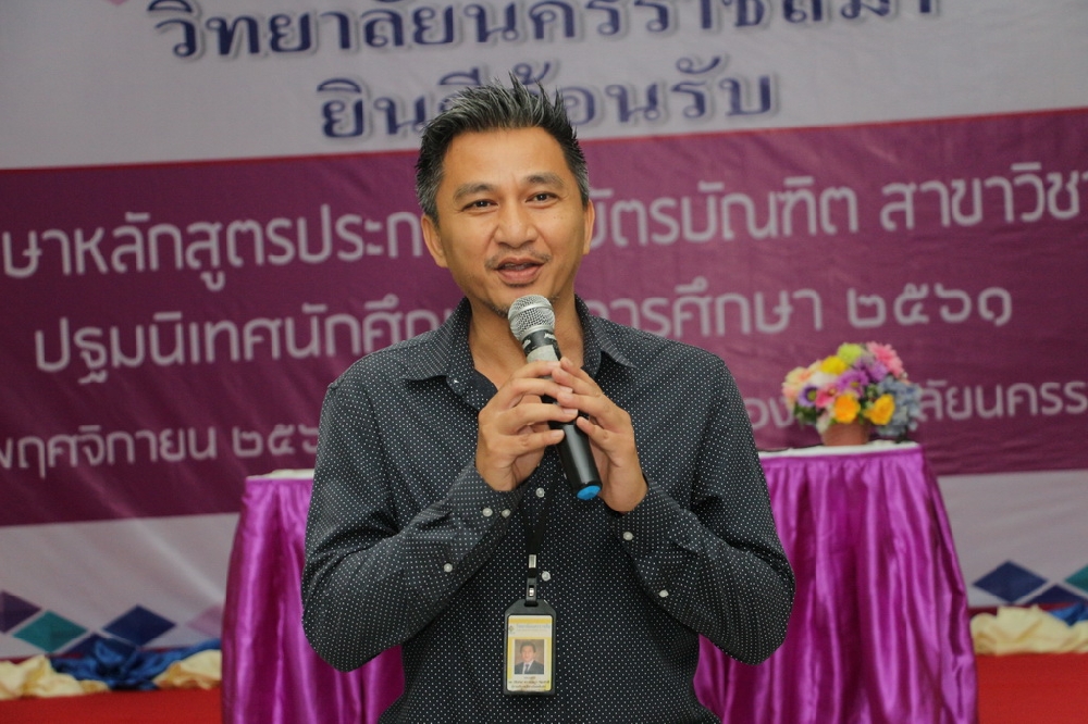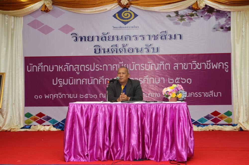 คณะศึกษาศาสตร์และศิลปศาสตร์ ได้จัดกิจกรรมปฐมนิเทศนักศึกษาหลักสูตรประกาศนียบัตรบัณฑิต สาขาวิชาชีพครู ปีการศึกษา 2561 วันที่ 10 พฤศจิกายน 2561 ณ ห้องประชุมลำตะคอง วิทยาลัยนครราชสีมา