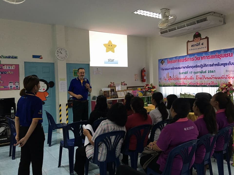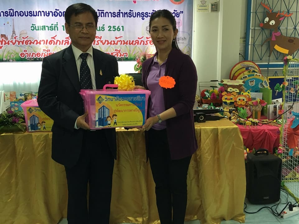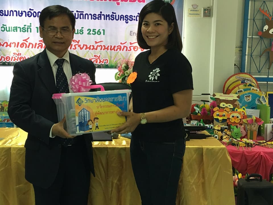 รายละเอียดกิจกรรม : "นวัตกรรมการเรียนรู้ สู่พัฒนาการทางปัญญา" ภายใต้โครงการพัฒนาคุณภาพการศึกษาฯ โดยท่านอธิการบดีวิทยาลัยนครราชสีมา (รศ.ดร.วิภาส ทองสุทธิ์) ส่งมอบให้โรงเรียนเครือข่าย ฯ วันที่ 17 กุมภาพันธ์ 2561 คณะศึกษาศาสตร์ฯ #วิทยาลัยนครราชสีมา ได้จัดกิจกรรมการฝึกอบรมภาษาอังกฤษเชิงปฏิบัติการสำหรับครูระดับปฐมวัย ณ โรงเรียนบ้านหลักร้อย อ.เมือง จ.นครราชสีมา โดยมีเครือข่ายโรงเรียนเข้าร่วมจำนวน 10 โรงเรียนจากศูนย์พัฒนาเด็กเล็ก